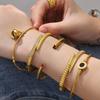 Zora Simple 18K Gold Stainless Steel Line Cross Opening Bracelet Gold and Zinc Alloy Matching Color Women's Fashion Zircon