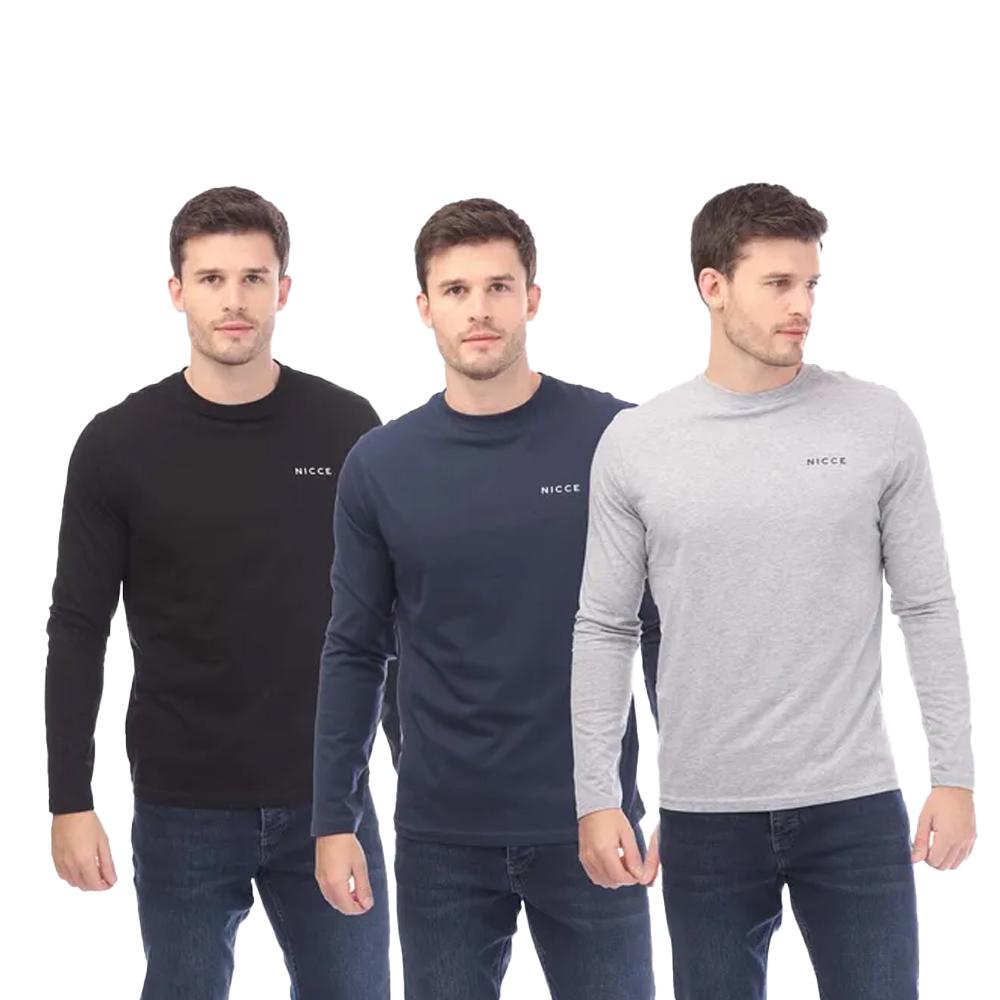 Nicce Mens Julian Long-Sleeved T-Shirt (Pack of 3)