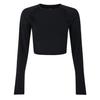 - Bare Midriff, Coverstitch, Cropped, Cut-Out Back, Mesh Insert, Thumb Holes, Underarm Vents.