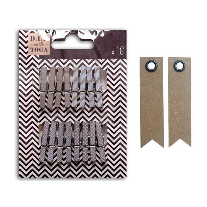 Mini pinces à linge argentées + 20 étiquettes kraft Fanion