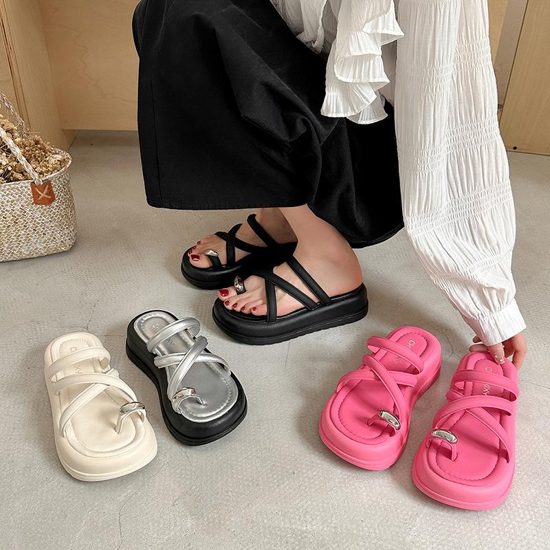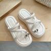 Summer cool slippers women's outer wear 2025 new thick-soled height-increasing small beach shoes high-end set toe half slippers
