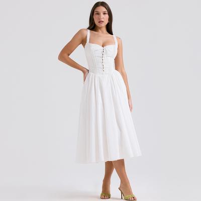 House Same Style Moonlight Dew French style Pastoral Style Embroidered White Suspender Skirt Waist Hugging Slimming Long Dress