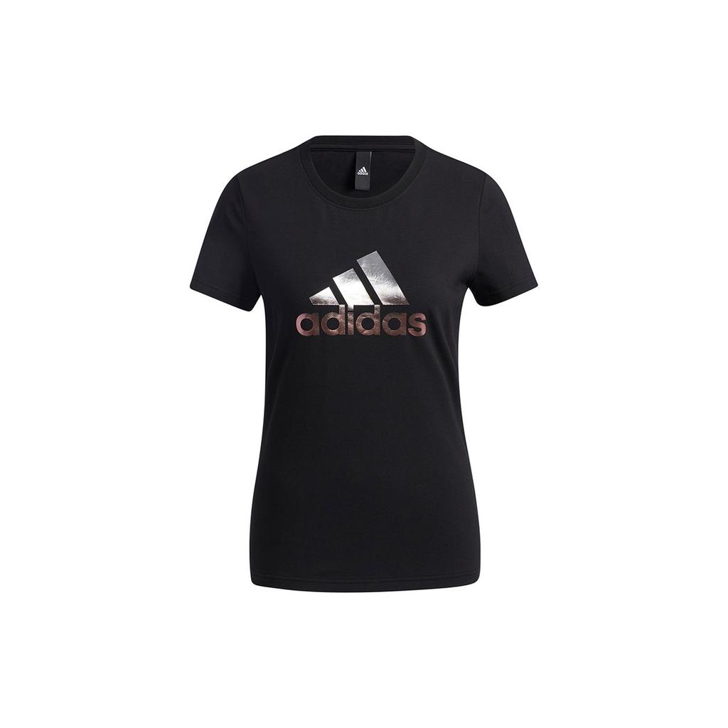 Adidas Foil Logo Print Sports Short Sleeve T-Shirt Women Tops Black GP0685