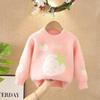 Korean Style Spring and Autumn Lapel Knitted Cardigan for Small and Medium-sized Children, Girls, Embroidery, Children's Sweater Jacket