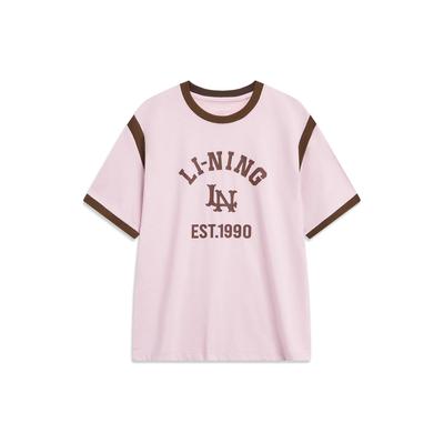 Li Ning Sports Lifestyle Series Letter 1990 Number Print Round Neck Short Sleeve T-Shirt Women Tops Off-White AHST858-1