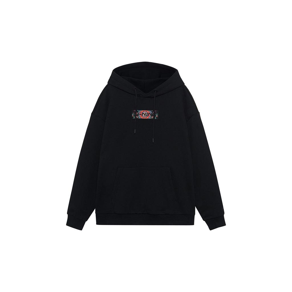 Li Ning Sports Fashion Series Embroidered Logo Loose Fleece Warm Hooded Sweatshirt Unisex sweatshirt Black AWDRD42-8