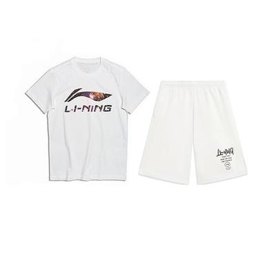 Li-Ning Printed Starry Sky Fashion Round Neck Pullover Short Sleeve Comfortable Breathable Shorts Casual Sports Suit AHSS971-3+YKSV129-1