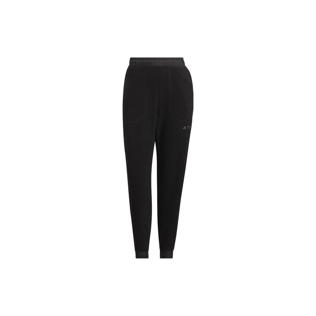 Adidas Fleece Joggers Solid Color Logo Outdoor Thickened Tapered Knit Sports Pants Women Bottoms Black IL9005