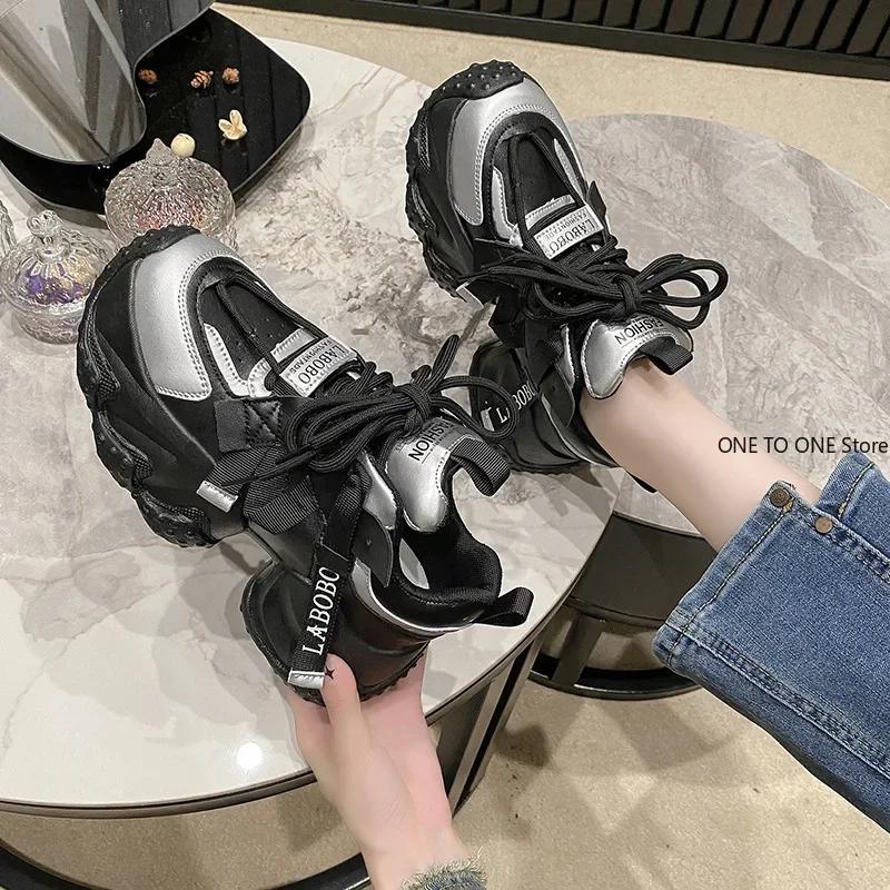 Fashion 35-43 Women's Chunky Sneakers 2024 Breathable Mesh Platform Sports Shoes Woman Fashion Lace Up Thick Sole Casual Shoes Mujer