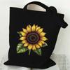 Black Canvas Tote Bag With Chamomile Flower Stylish Casual Shoulder Handbag For Shopping, Daily Use & Gifts, Shopping Handbag