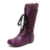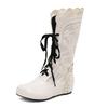 Fashion Women Victorian Boots Calf High Goth Booties Lace Up Cosplay Costume Witch Medieval Renaissance Vintage Shoes