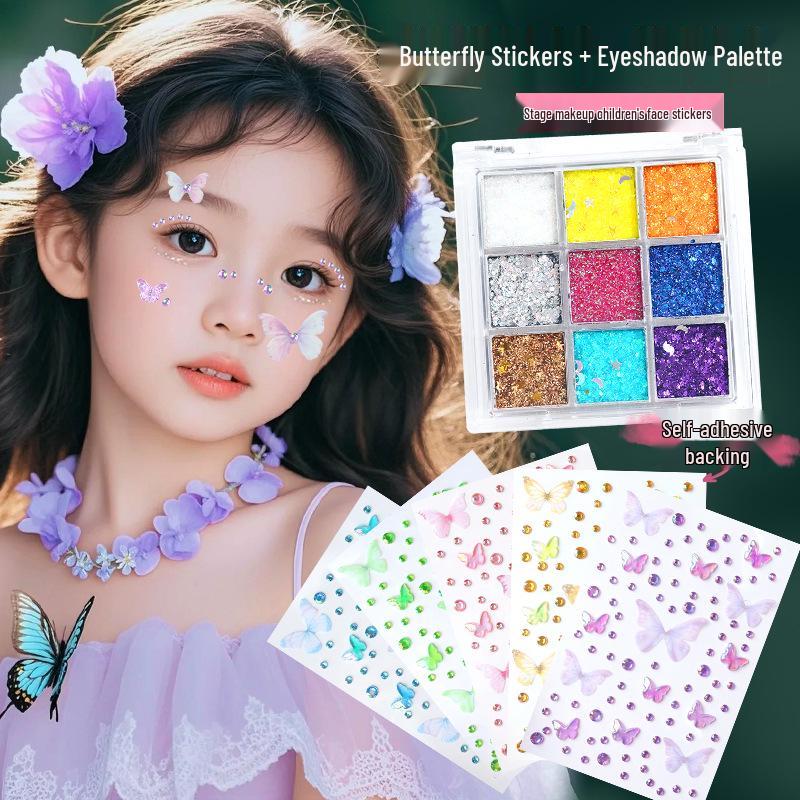 Αυτοκόλλητα Προσώπου Πεταλούδα & Διαμάντι για Παιδικό Μακιγιάζ Σκηνής