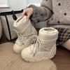 Fashion 2025 Winter Chunky Heel Snow Boots Women Fashion Patchwork Slip On Snow Boots Woman Thicken Short Plush Warm Botas Mujer
