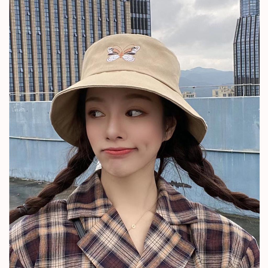 Summer Ladies Bucket Hat Butterfly Embroidered Foldable Flat Bottom Summer Fishing Fisherman Fashion Hat Hip-hop Hat
