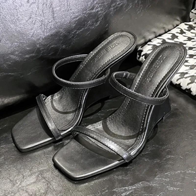 Fashion Sexy Wedge Heeled Sandals Women Fashion Slingback Slide Slippers Women Summer Square Toe High Heels Party Dress Shoes Sandalias