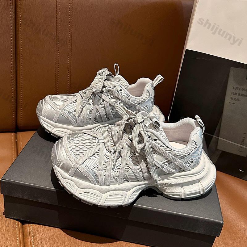 Fashion Women's Platform Sneakers 2025 Summer New Mesh Breathable Height Increase Sports Shoes Fashion Lace Up Comfortable Casual Shoes