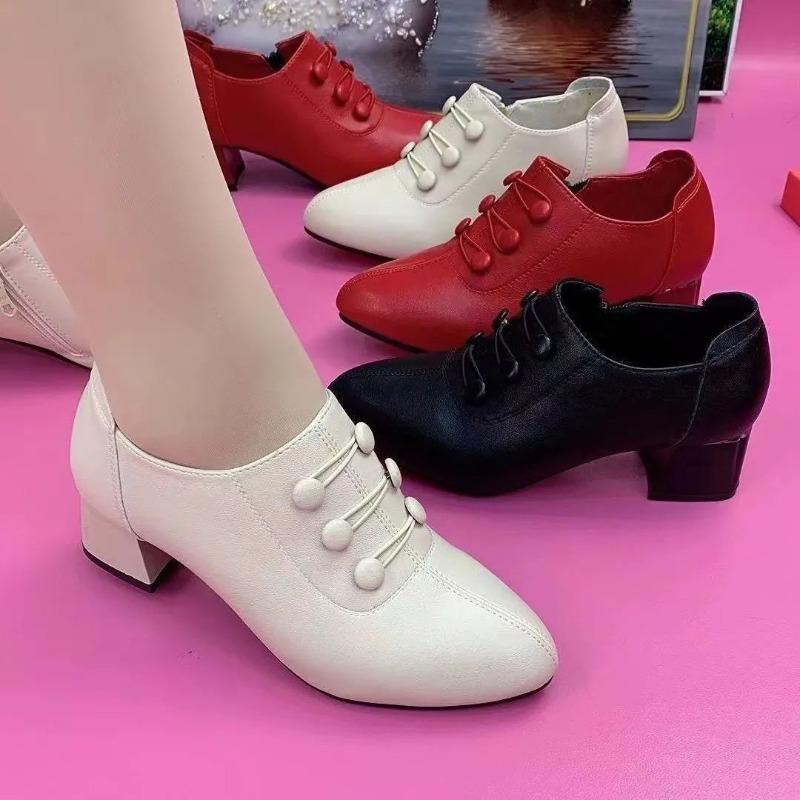 New autumn women's shoes leather soft leather soft sole thick heel medium heel versatile deep mouth single shoes women
