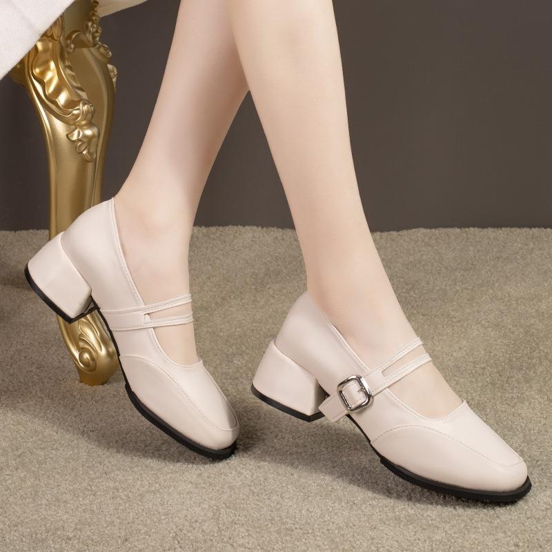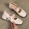 Mary Jane μαύρα μικρά δερμάτινα παπούτσια γυναικεία φθινοπωρινά νέα στρογγυλή μύτη ευέλικτα με φούστα ρετρό χοντρό τακούνι μονοκόμματα παπούτσια