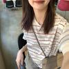 A Retro Color-blocking Striped Fitted Knitted Sweater for Women To Wear As A Base Layer In Autumn, Making Them Look Younger and Slimmer