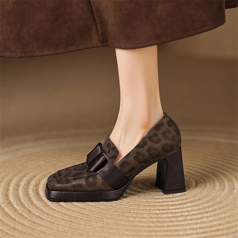Fashion New Spring/summer Square Toe Genuine Leather Shoes for Women Fashion Leopard Print Women Pumps Women Shoes High Heels Loafers