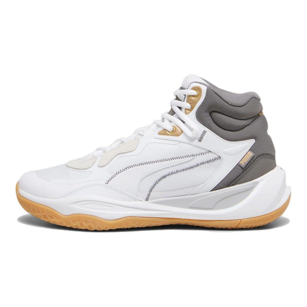 Puma Playmaker Pro Στρογγυλή Μύτη Δέσιμο με Κορδόνια Απορρόφηση Κραδασμών Αντιολισθητικά Μποτάκια Μπάσκετ Ανδρικά αθλητικά παπούτσια Λευκό Γκρι 379019-01