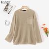 ZANZEA Γυναικεία Φθινοπωρινά Πλεκτά Μπλούζες με Στρογγυλή Λαιμόκοψη και Μακρύ Μανίκι