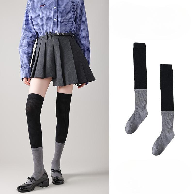 Γκρι Μεγάλη Αντίθεση Χρωμάτων, Διπλό Στόμα Κολέγιο Στυλ Κάλτσες Σωλήνας, Γυναικείες Κάλτσες Πάνω από το Γόνατο, Μακριές Κάλτσες, Ψηλές Κάλτσες, Κάλτσες Μπότας, Κόκκινες Κάλτσες