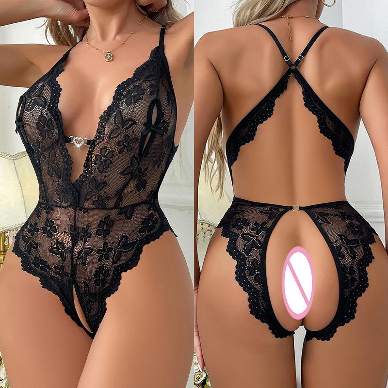 Super Crotchless Lingerie Women Lace Erotic Bodysuit Sexy Outfit See Through Babydoll Dress Deep V Open Bra Porn Underwear