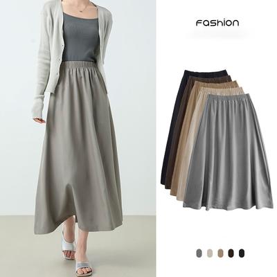 MD Spring and Summer Women's Clothing French Style All-Matching Cotton Blend Elegant Commute Style Wide Hem Midi Skirt 5286584