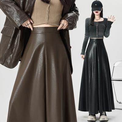 Spring New Women's Clothing Fashion Elegant Brown Fancy Poly Urethane Leather Mid Length Long Length Skirt 5308838