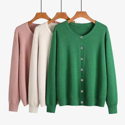 MD Autumn New Women clothes Commuter Style Solid Soft Glutinous Fleece Blended round Neck Knitted Cardigan 5770593