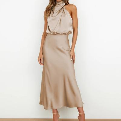 Summer New Product Women clothes French style Design Silk Satin Texture Neck Collar Midi Dress 3592399