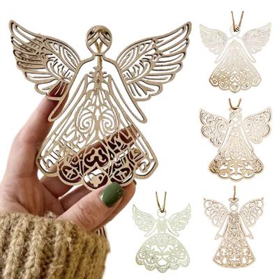 Ξύλινα Αγγελάκια Χριστουγεννιάτικα Στολίδια Ρουστίκ Αγγελάκι Κρεμαστό Στολίδι με Διάτρητο Σχέδιο για Χειμώνα Χριστούγεννα Σπίτι Γραφείο Τοίχος Παράθυρο Τζάκι Διακόσμηση Πάρτι