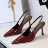 Fashion Women 10cm Rivet Strap Women Pumps Sexy High Heels Elegant Temperament Banquet Shoes Patent Leather Stilettos Pumps Ladies Shoes