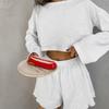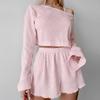 Experience comfort and style with this women's long-sleeve shorts set, crafted from a soft and skin-friendly polyester material. Designed as an ideal choice for home wear, the woven knit blend offers a gentle, luxurious feel against the skin. This set combines European and American fashion influences, providing a cozy yet chic look perfect for lounging at home.