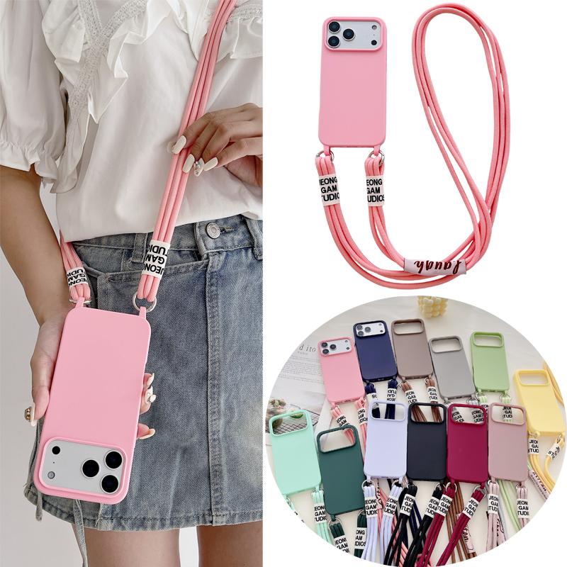 Crossbody Lanyard 2 Rope Liquid Silicone Case For iPhone 17 Air 17 16 15 14 13 12 11 Pro Max X XR Max 7 8 Plus Samsung S25 S24 23 Ultra Plus