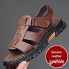 Men's Plus Size Cowhide Sandals: Breathable, Non-Slip, Waterproof Velcro Beach Shoes for Middle-Aged and Elderly.