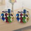 Colorful Ethnic Costume African Female Pattern PU Leather Earrings Ladies Elegant Earrings Ethnic Style Earrings Personality Earrings