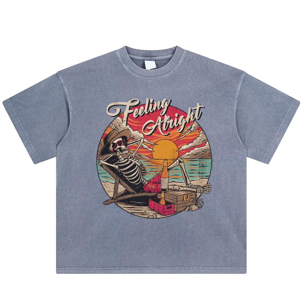Halloween Skeleton Graphic T-Shirt Cotton Washed Tshirt Unisex Tops Tees Summer Short Sleeves T Shirt