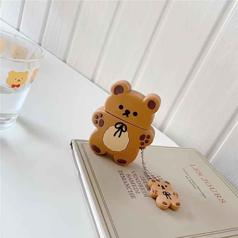 Χαριτωμένη 3D Κινούμενη Σιλικονένια Ασύρματη Θήκη Ακουστικών Καφέ Αρκούδα με Μπρελόκ - Ιδανική για Airpods 1/2/3/Pro!