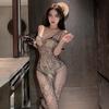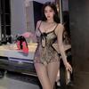 Women's Temptation Lingerie: Open-Crotch Bodysuit with Removable Black Stockings for Small Chest - Plus Size Available
