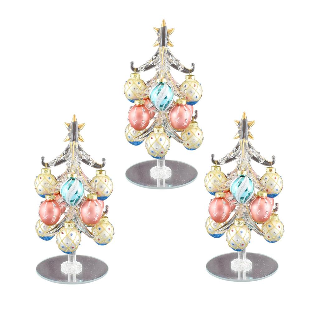 Fourcart Cute Handmade Glass Christmas Tree Ornament Set: Milky Drop Tree x 3