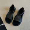 Soft leather version~ retro casual hollowed-out open-toed sandals women's summer new versatile soft-soled heightening Roman shoes