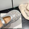 Super breathable~ Rhinestone golden fishing net bag head half slippers women's 2025 summer new thick-bottomed Mary Jane French sandals