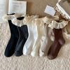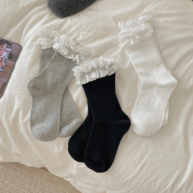 Female Spring and Autumn Sweet Pure Color Pull A Love All Kinds of Big Lace Boneless Tube Pile Socks