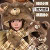 Cute capybara hat scarf gloves integrated women's winter windproof warm plush three-piece hat