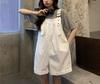 Green Plus Size Petite Cotton Workwear Overalls Shorts for Women - Summer High Waist, Loose Wide-Leg Style