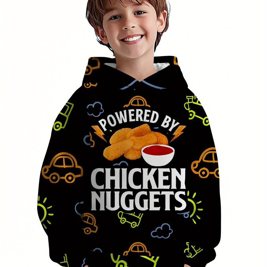 3D Digital Print Hooded Sweatshirt for Boys - Black Casual Pullover, Perfect Gift, Fun Kids Fashion, Easy-Care Children's Wear