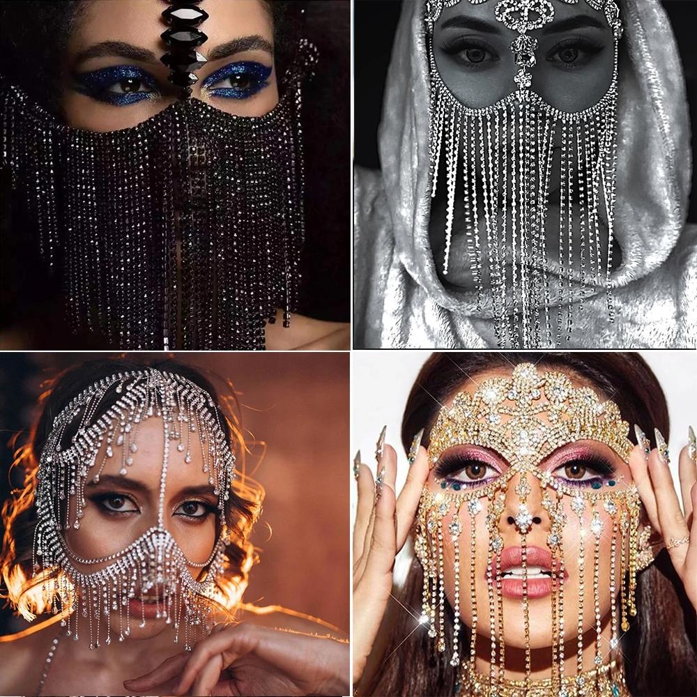 Μόδα Γοητευτικές Μάσκες με Φούντες από Στρας για Γυναίκες Μποέ Κοσμήματα Προσώπου Αλυσίδα Μασκέ Πάρτι Χορού Σέξι Αξεσουάρ Κοστουμιού