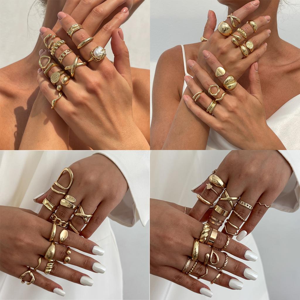 Accessories, Wind Alloy Open Twist Ring Ring, Pearl Hollow Irregular Ring Set